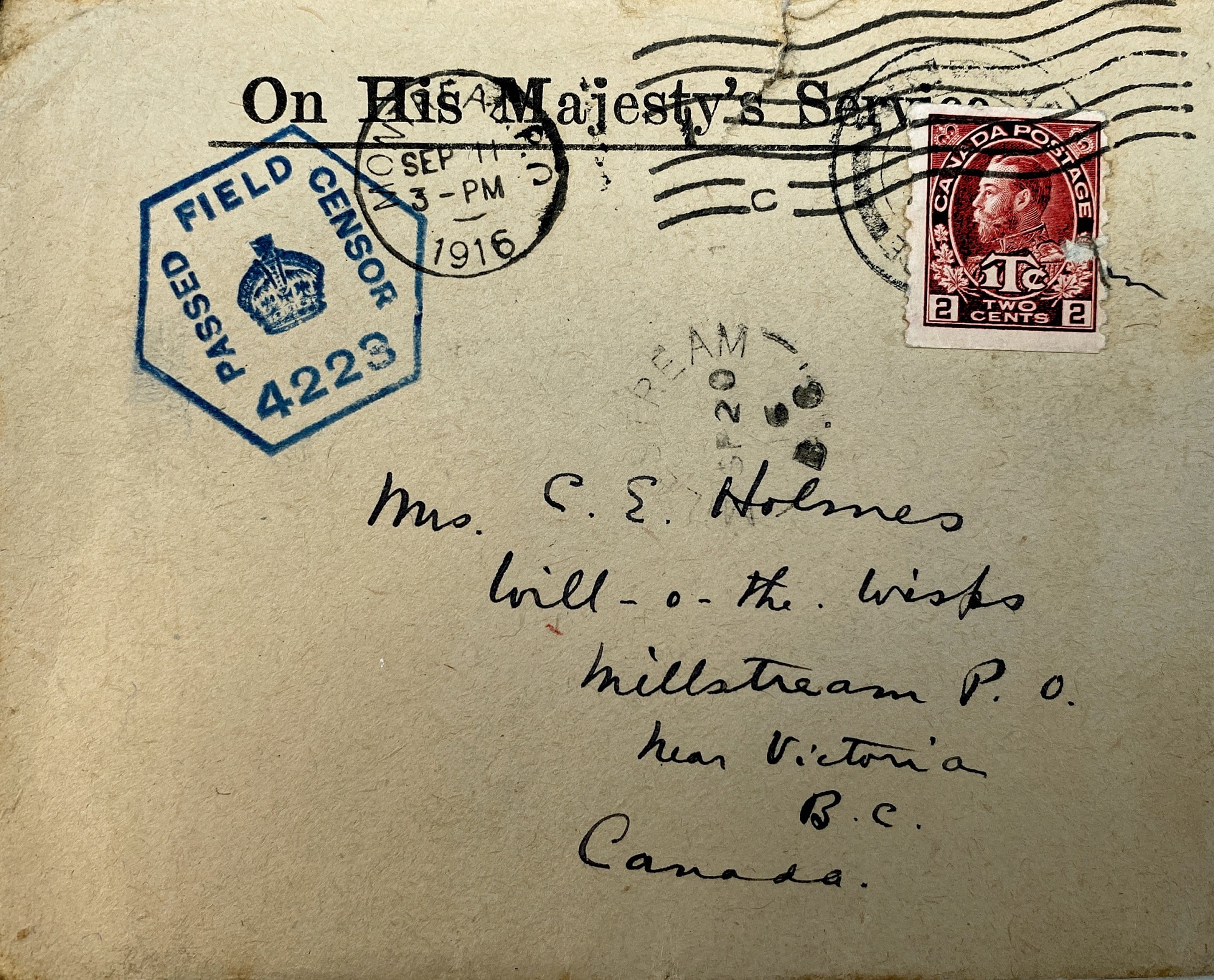 While this practice has existed as long as writing has, the introduction of the Canadian Mail Corps was not until 1911 and was created specifically to handle military correspondence. By the first world war during 1915 alone, over eight million letters were sent from Canada to the four hundred thousand soldiers overseas, and at least four million were sent back (Macleans, 2018). As Philippa (née Pemberton) Holmes’ eventual brother-in-law Lancelot de Sausmarez Duke puts it “One can’t imagine how really lovely it is to get a letter, it is the only thing to live for here.”